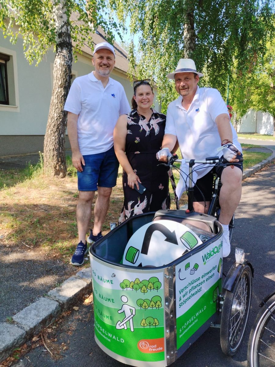 Na štaciji pred krčmom Kod Julke sastali su se organizatori. Martin Kerstinger je razdiljao floše s vodom od jednoga sponzora. s live: Joži Buranić, Sonja Horvat, Martin Kerstinger Bei der Station vor dem Wirtshaus Kod Julke trafen sich die Organisatoren. Martin Kerstinger verteilte Wasserflaschen eines Sponsors. vlnr: Josef Buranits, Sonja Horvath, Martin Kerstinger