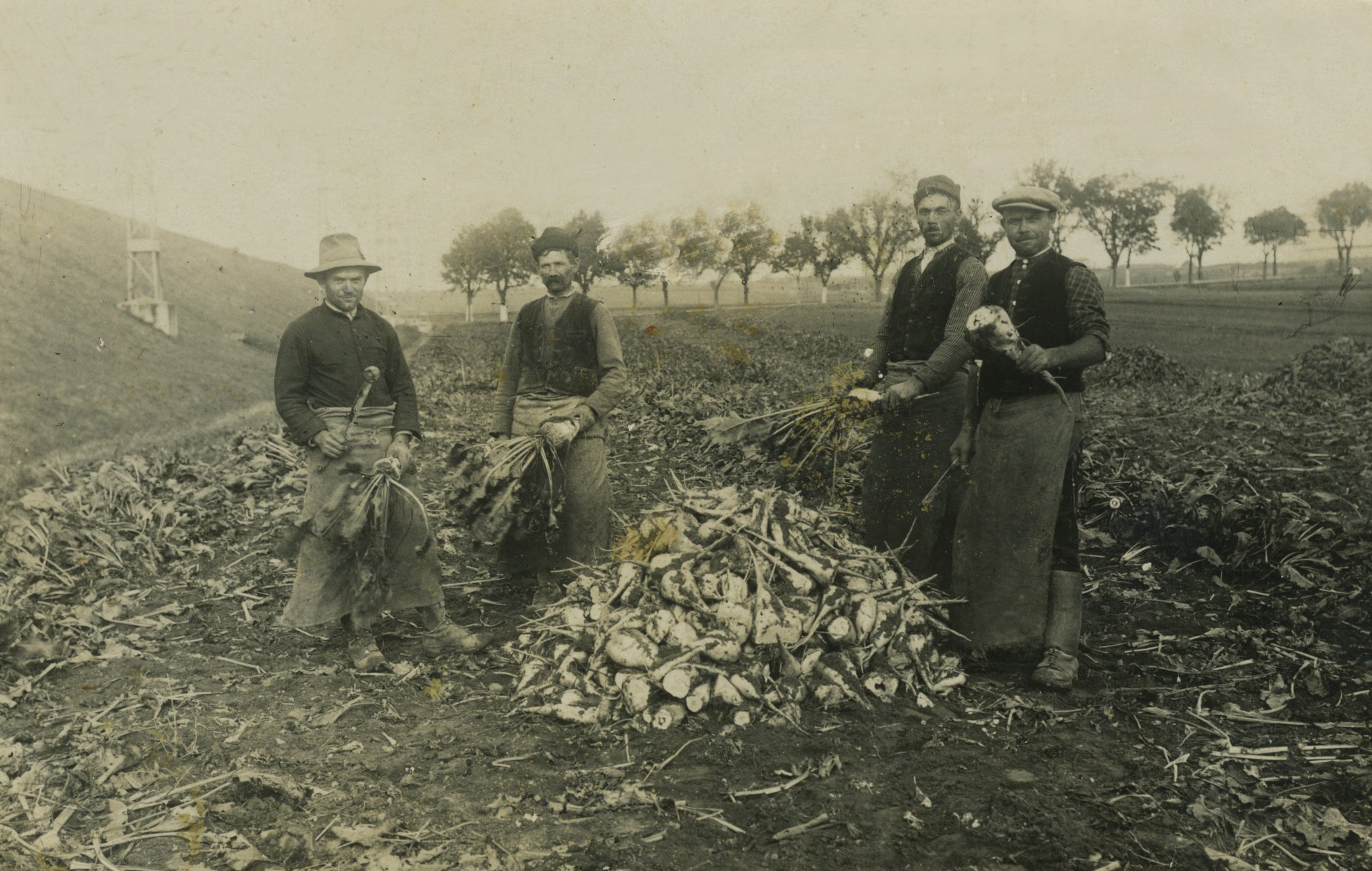 Männer bei der Rübenernte am Feld